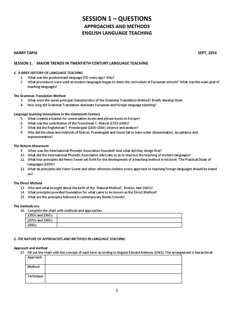 SESSION 1. MAJOR TRENDS IN TWENTIETH-CENTURY LANGUAGE TEACHING
