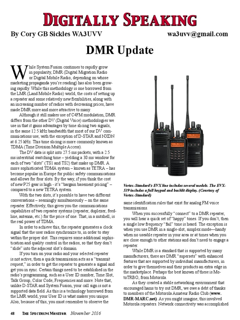 good news, as it provides for a consis- The DMR enthusiasts in Toronto have been doing this for some time and