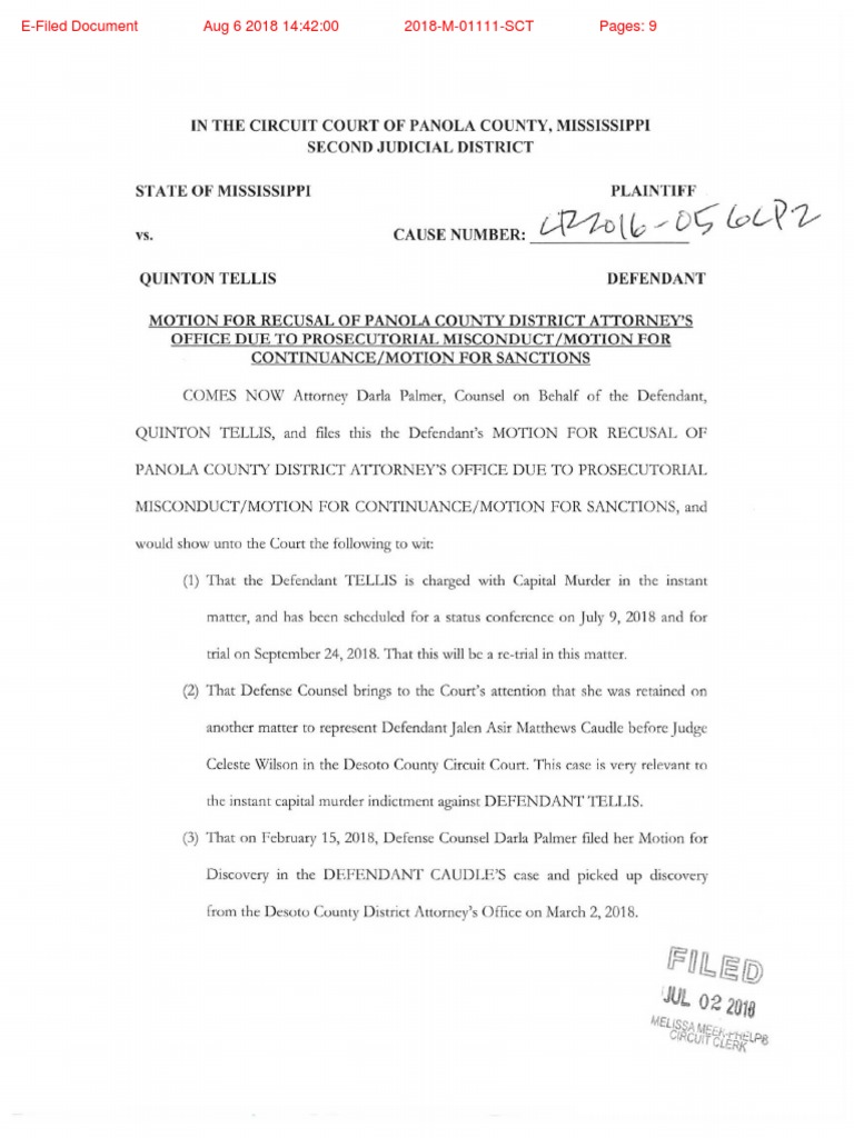 QUINTON TELLIS, and files this the D efendant's MOTION FOR RECUSAL OP