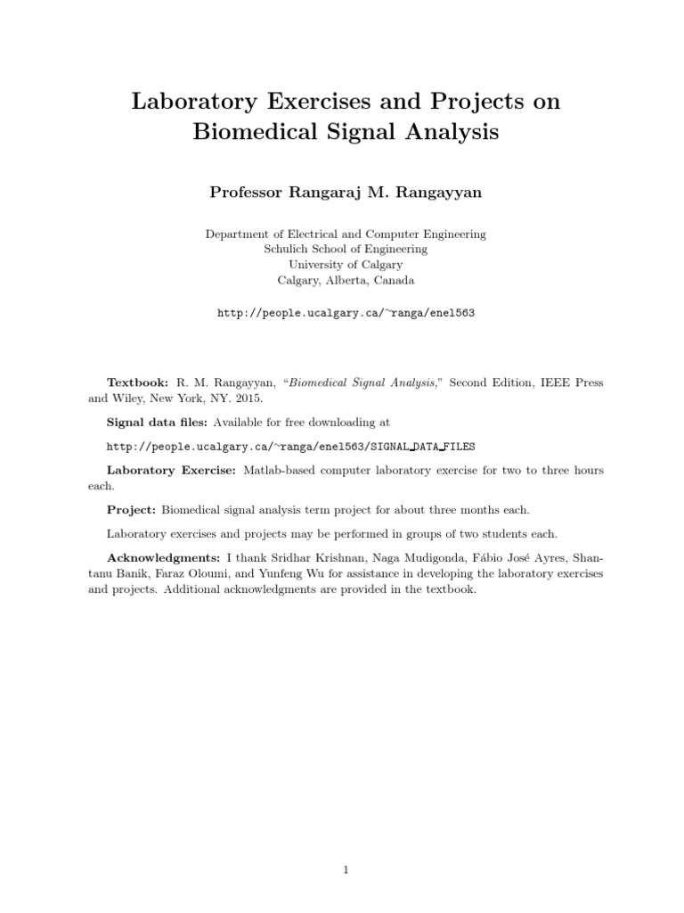 • Your project involves the processing of real-life biomedical signals. Several signals are avail-