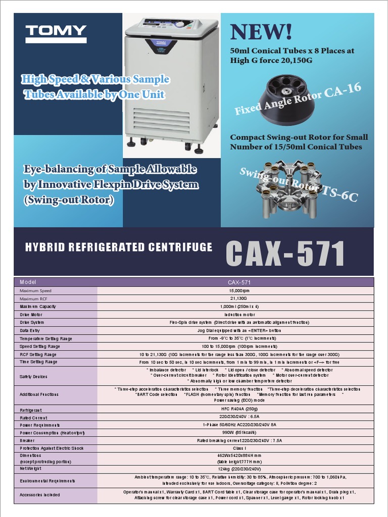 Rotor Type Max. Speed (rpm) Max. RCF (G) Rotor Capacity (ml×number tubes) Comments