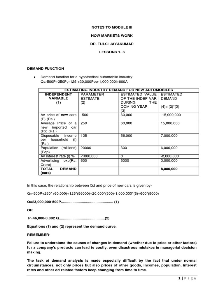 Q=-500P+250Px+125I+20,000Pop-1,000,000i+600A
