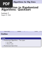 Randomized Quicksort: Run the Quicksort algorithm as given above, each time picking a