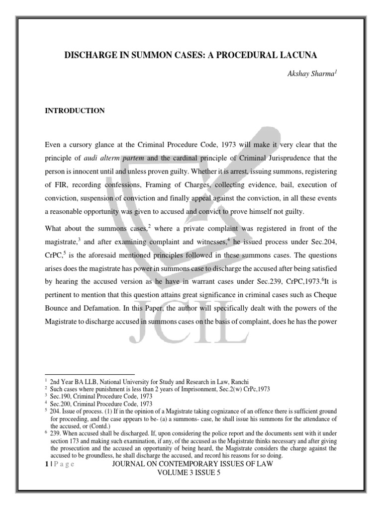 DISCHARGE IN SUMMON CASES: A PROCEDURAL LACUNA