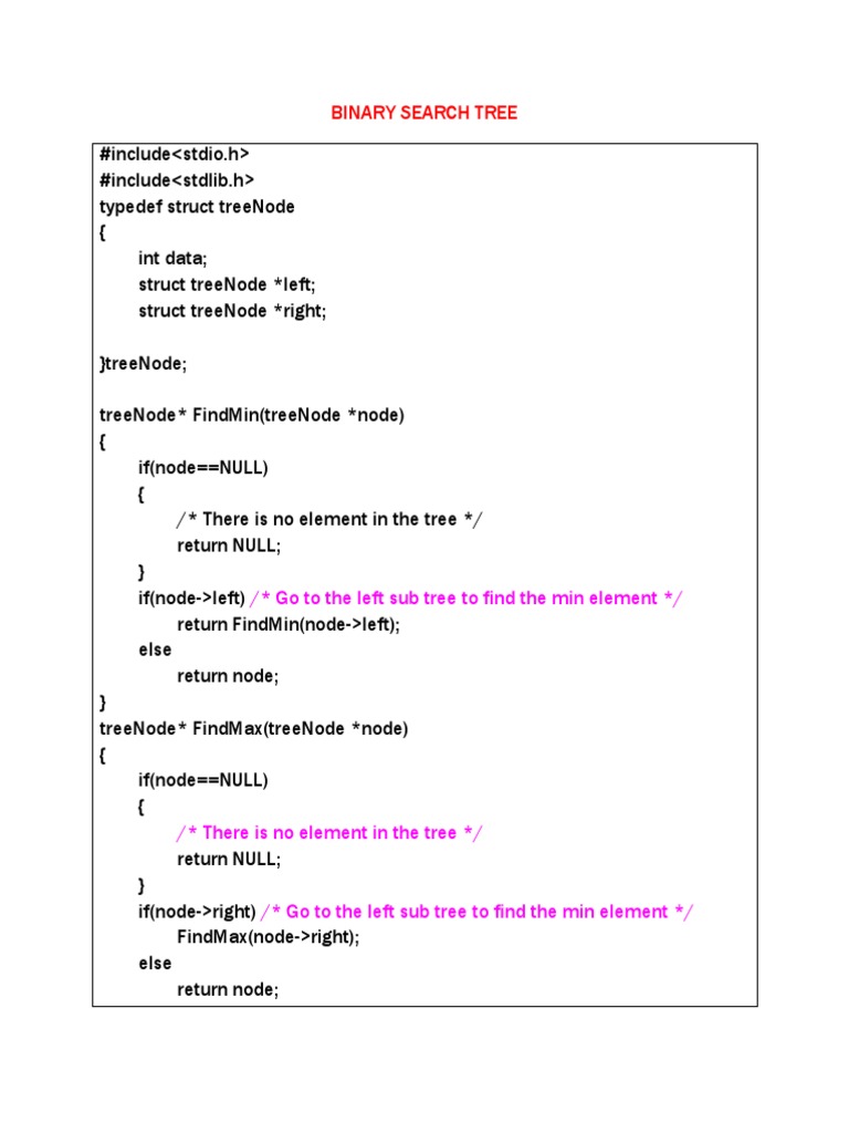 treeNode* FindMin(treeNode *node)