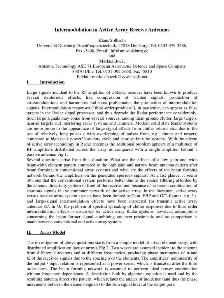 /2/ W.A. Sandrin,”Spatial Distribution of Intermodulation Products in Active Phased Array Antennas”, IEEE