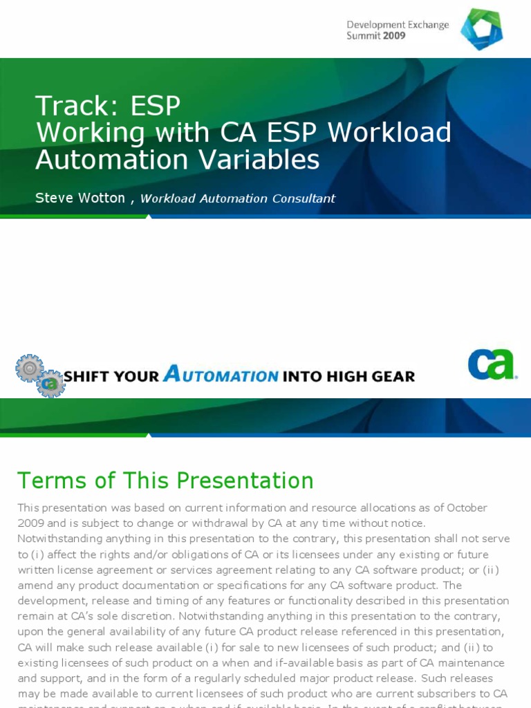 44 October 12, 2009 Working with ESP WA Variables Copyright © 2009 CA