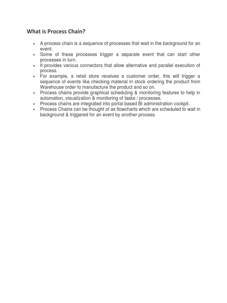 Process Chains can be thought of as flowcharts which are scheduled to wait in