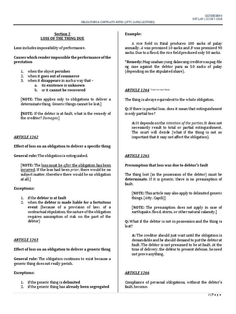 OBLIGATIONS & CONTRACTS NOTES (ATTY. CAPILI LECTURES)