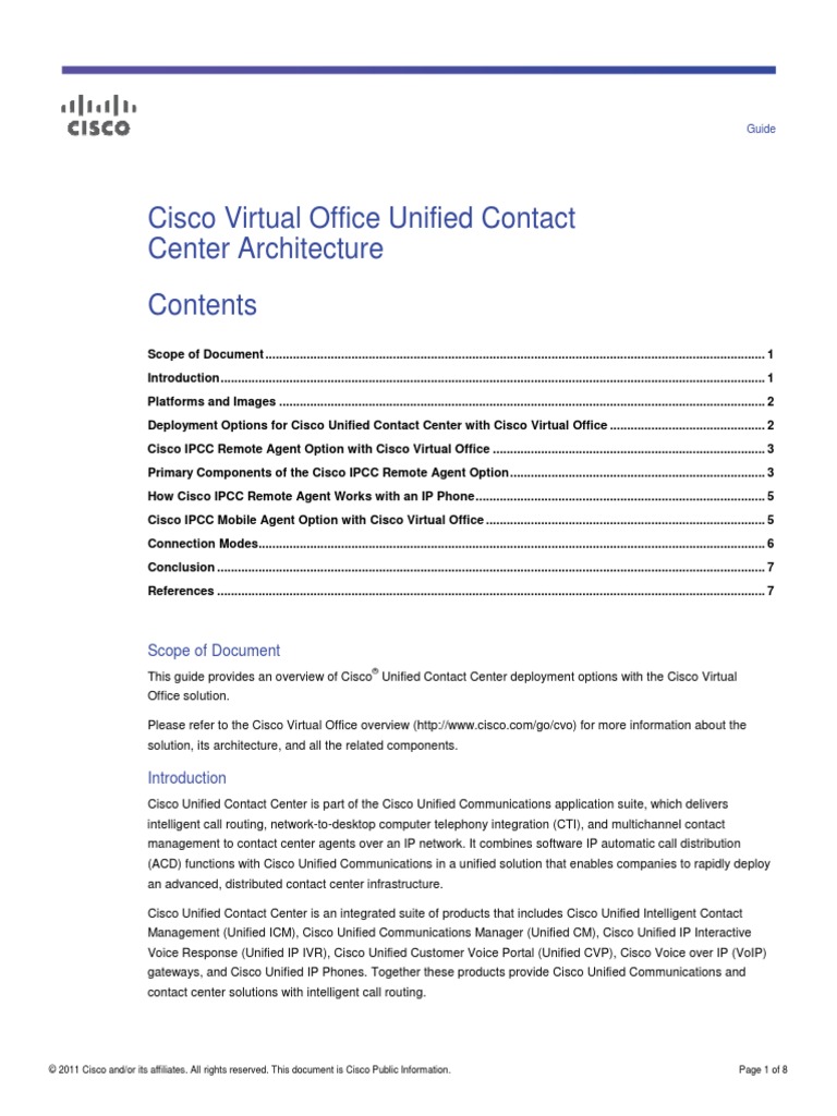 This guide provides an overview of Cisco Unified Contact Center deployment options with the Cisco Virtual