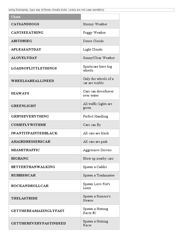 uring Gameplay, type any of these cheats (note: codes are not case sensitive)