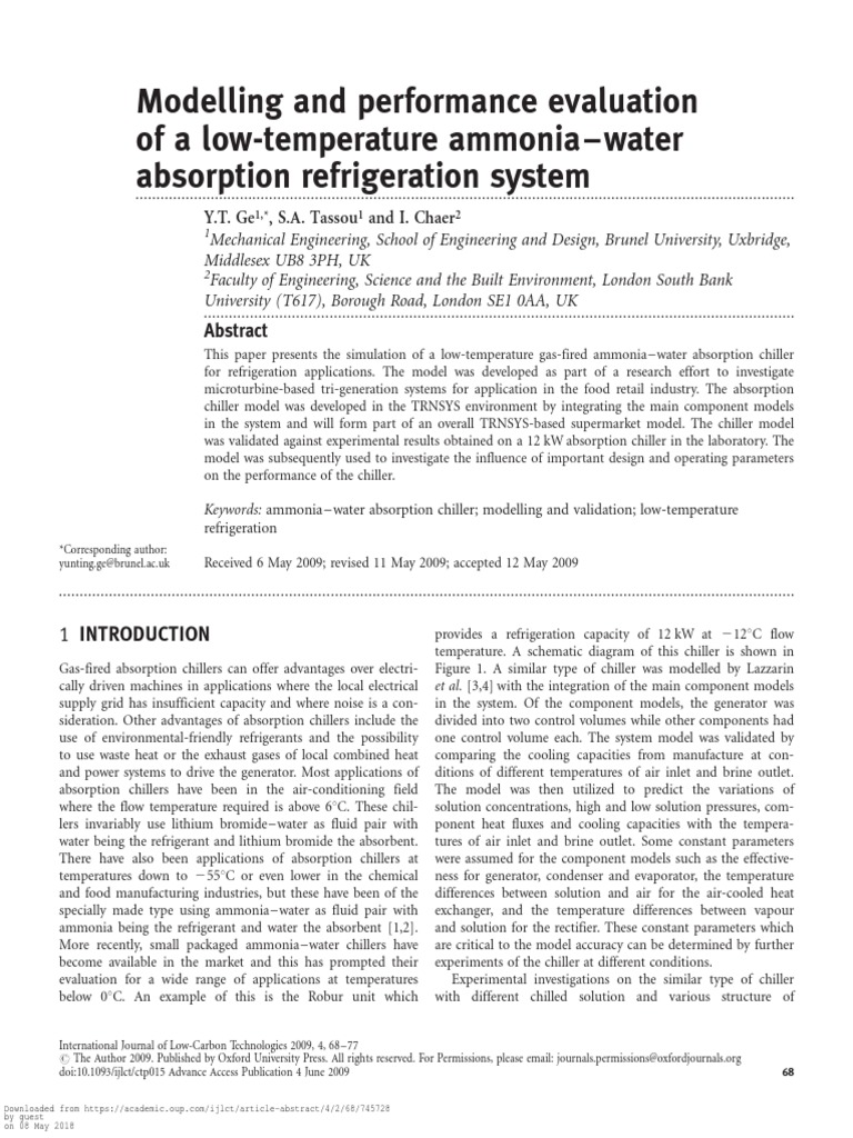 transfer of the ammonia/water absorber. Int. J. Refrigeration 2004;27: