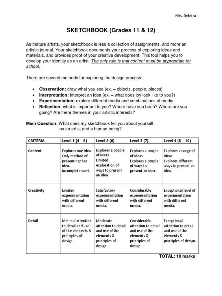 artistic journal. Your sketchbook documents your process of exploring ideas and