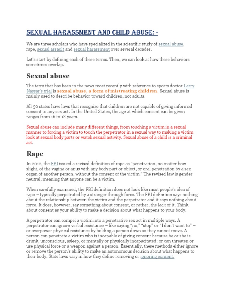 Nassar’s trial is sexual abuse, a form of mistreating children. Sexual abuse is
