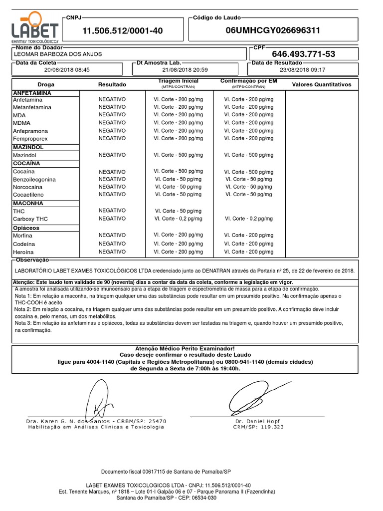 LABORATÓRIO LABET EXAMES TOXICOLÓGICOS LTDA credenciado junto ao DENATRAN através da Portaria nº 25, de 22 de fevereiro de 2018.