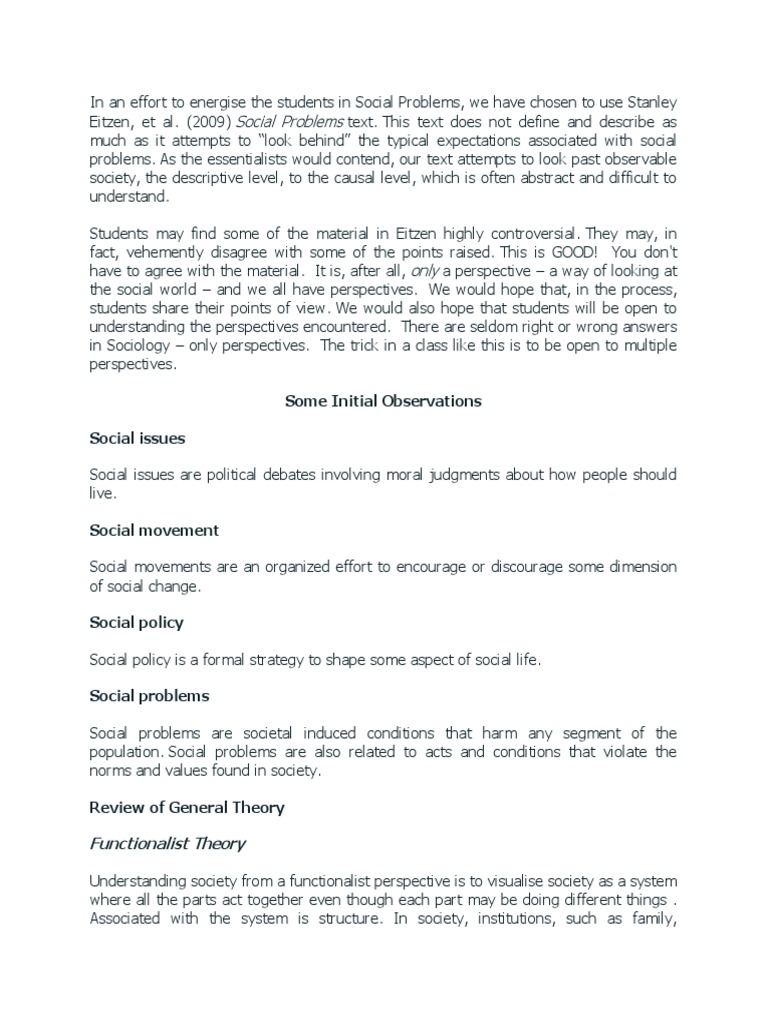 Eitzen, et al. (2009) Social Problems text. This text does not define and describe as