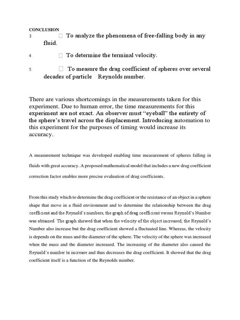 From this study which to determine the drag coefficient or the resistance of an object in a sphere