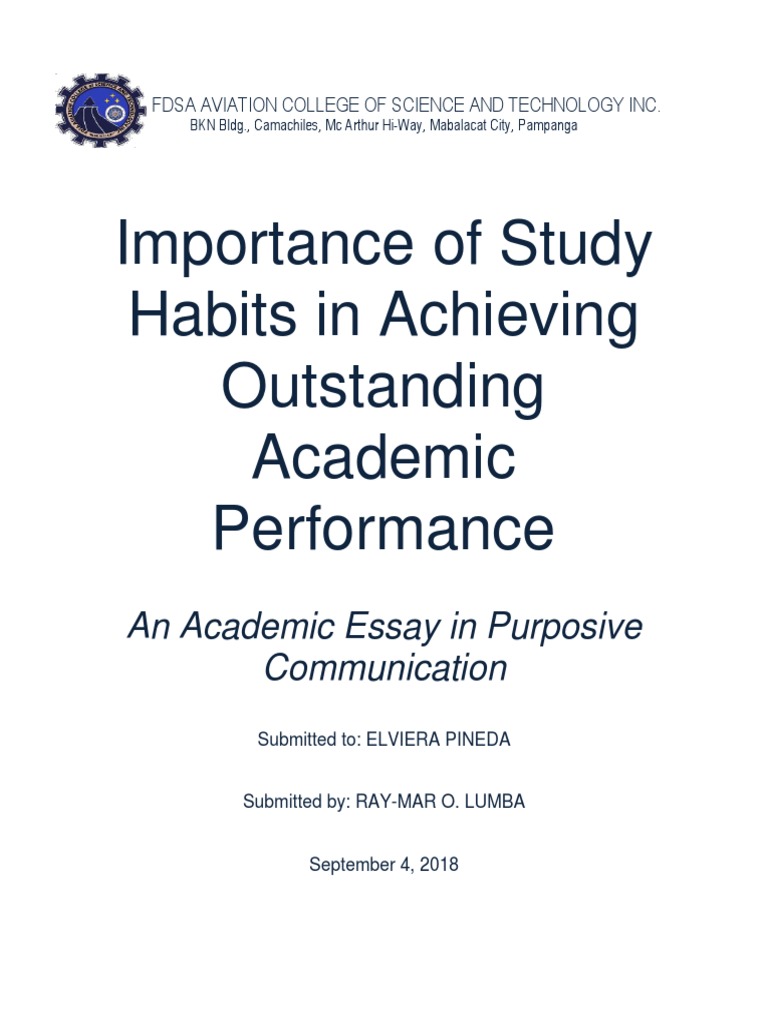 Title: Importance of Study Habits in Achieving Outstanding Academic