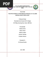 performance. Specifically it seeks to answer the following question:
