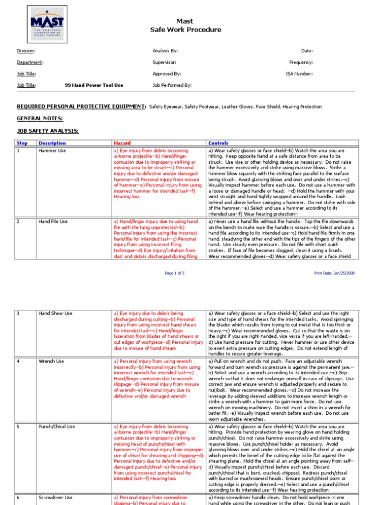 Job Title: 99 Hand Power Tool Use Job Performed By: