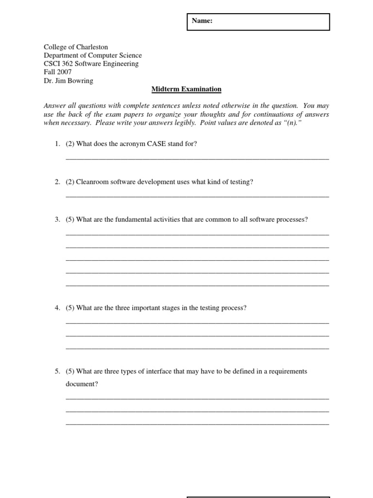 when necessary. Please write your answers legibly. Point values are denoted as “(n).”