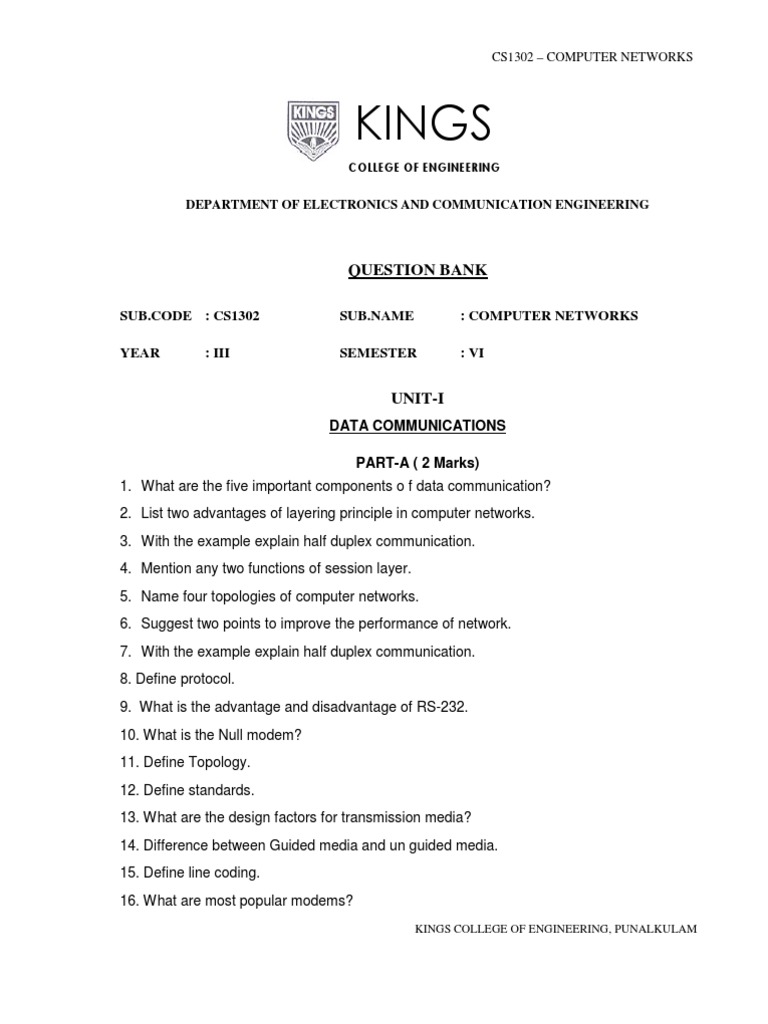 SUB.CODE : CS1302 SUB.NAME : COMPUTER NETWORKS