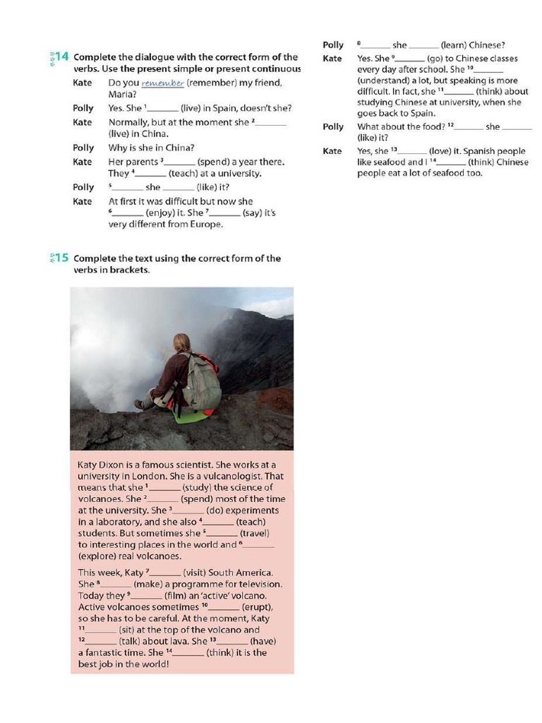 verbs. Use the present simple or present continuous