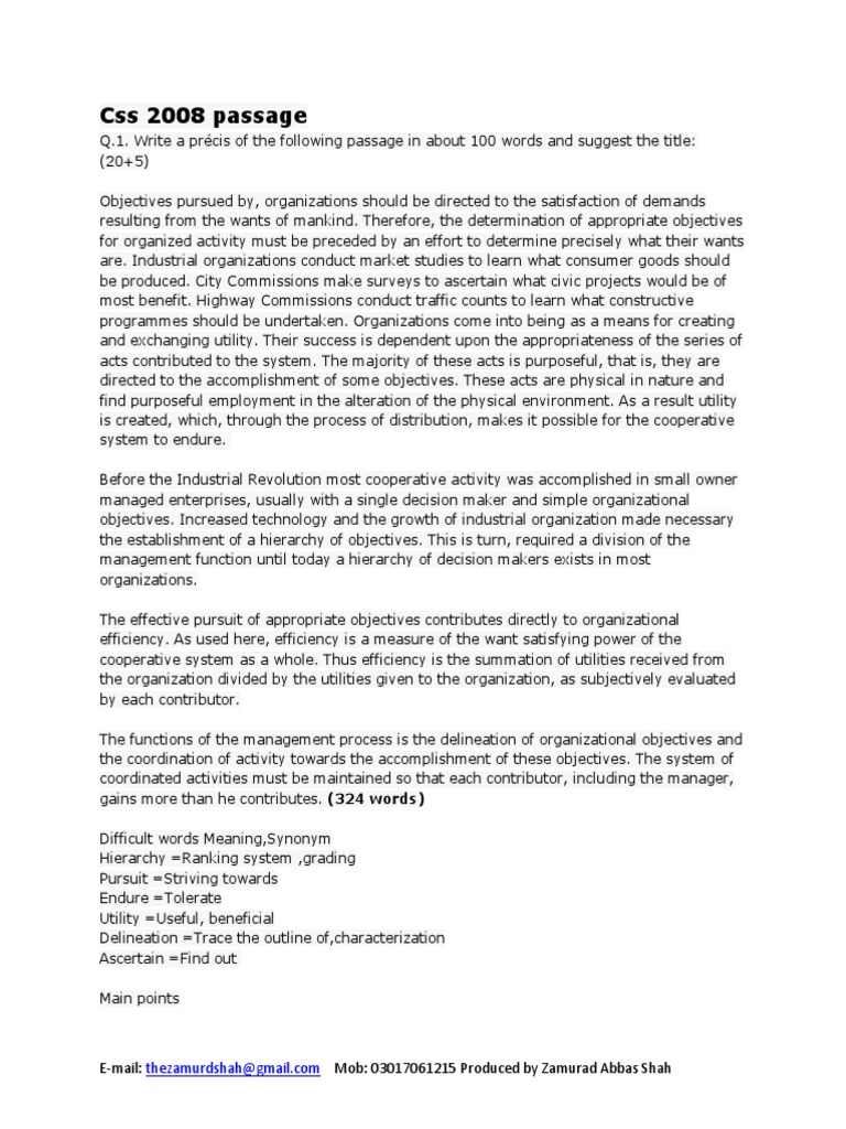 Passage from css past paper of 2007