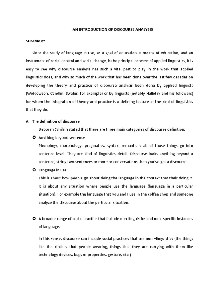 AN INTRODUCTION OF DISCOURSE ANALYSIS