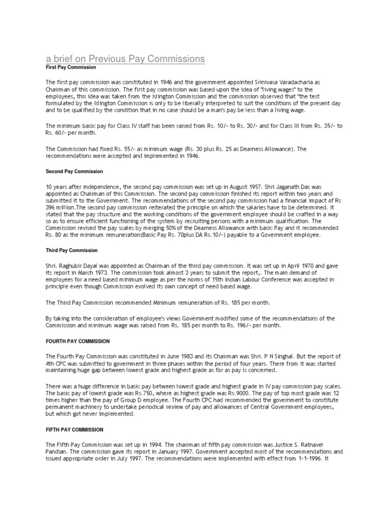 Chairman of this commission. The first pay commission was based upon the idea of "living wages" to the