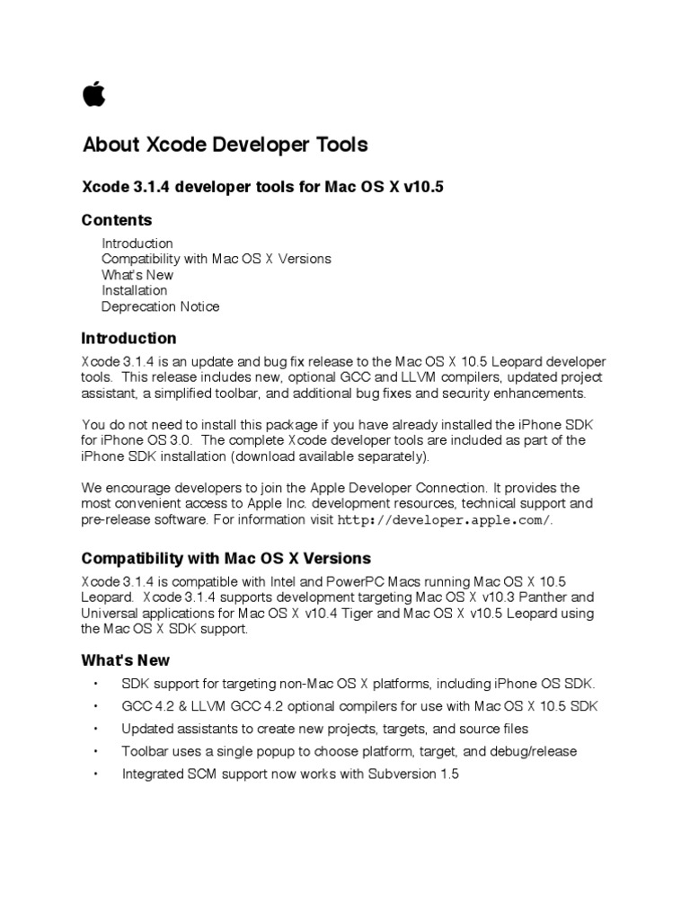 Xcode 3.1.4 developer tools for Mac OS X v10.5