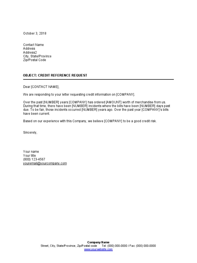 Based on our experience with this Company, we believe [COMPANY] to be a good credit risk.