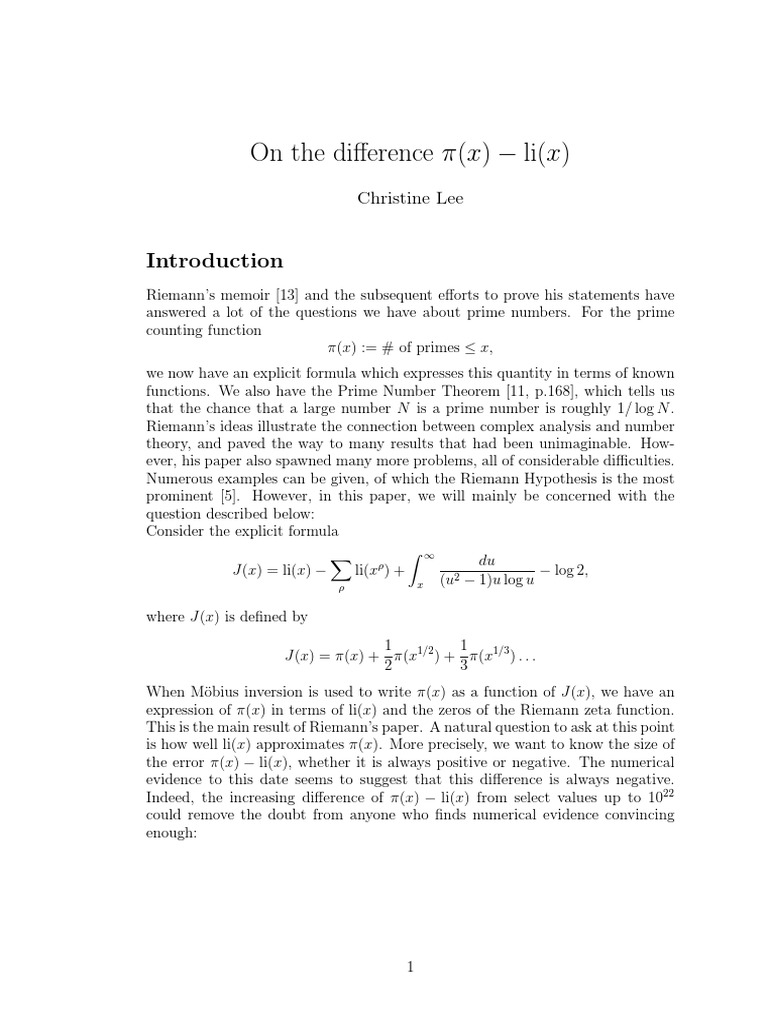 On the difference π (x) − li (x) : Christine Lee