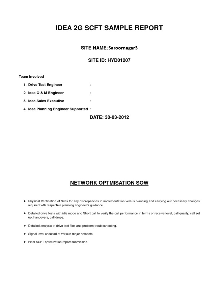 Detailed drive tests with idle mode and Short call to verify the call performance in terms of receive level, call quality, call set
