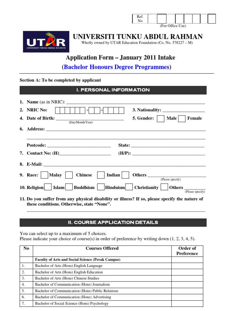 Please indicate “UTAR JANUARY 2011 INTAKE” on the top left corner of the envelope.