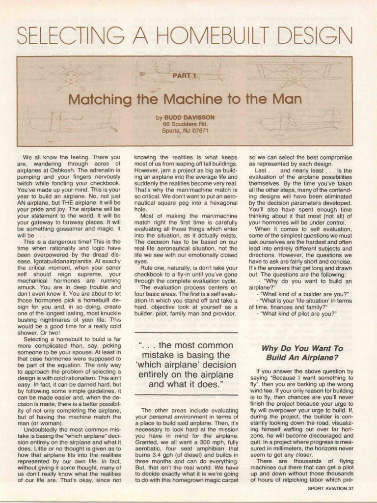 The fact that many homebuilts offer you a new side of yourself and, at the that overtakes us all right after supper