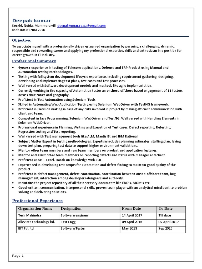 4years+ experience in testing of Telecom applications, Defense and ERP Product using Manual and