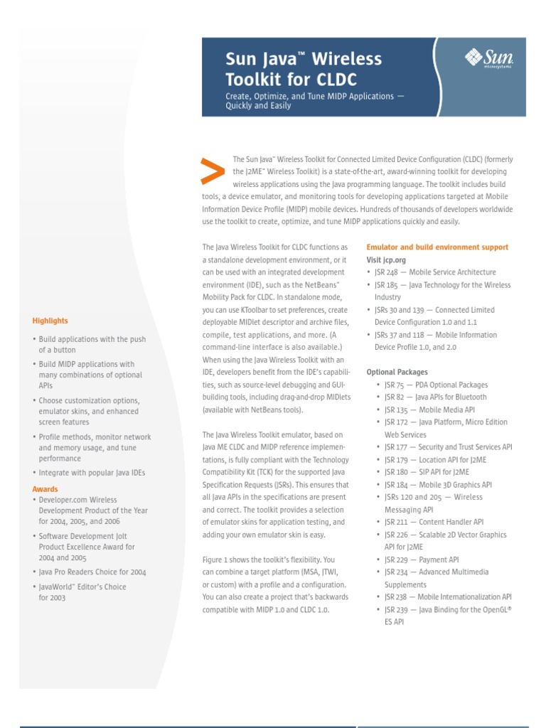 2 Sun Java™ Wireless Toolkit for CLDC sun.com/software