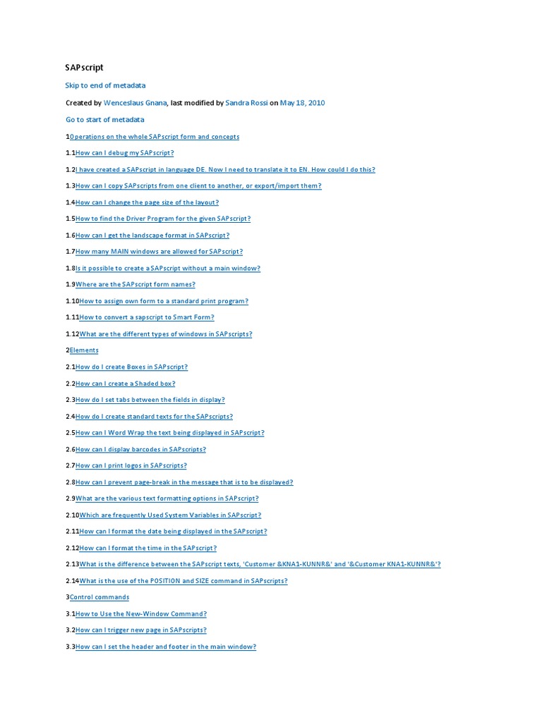 Scripts Of Your Own Using Standard Scripts Creating Hypertext in SAP Scripts Different font on the same line Displaying