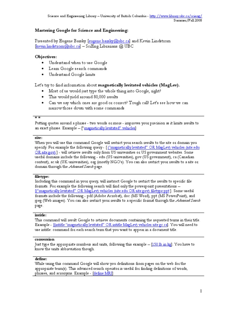 Science and Engineering Library – University of British Columbia - http://www.library.ubc.ca/scieng/