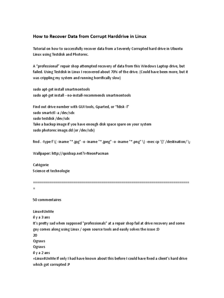 Tutorial on how to successfully recover data from a Severely Corrupted hard drive in Ubuntu