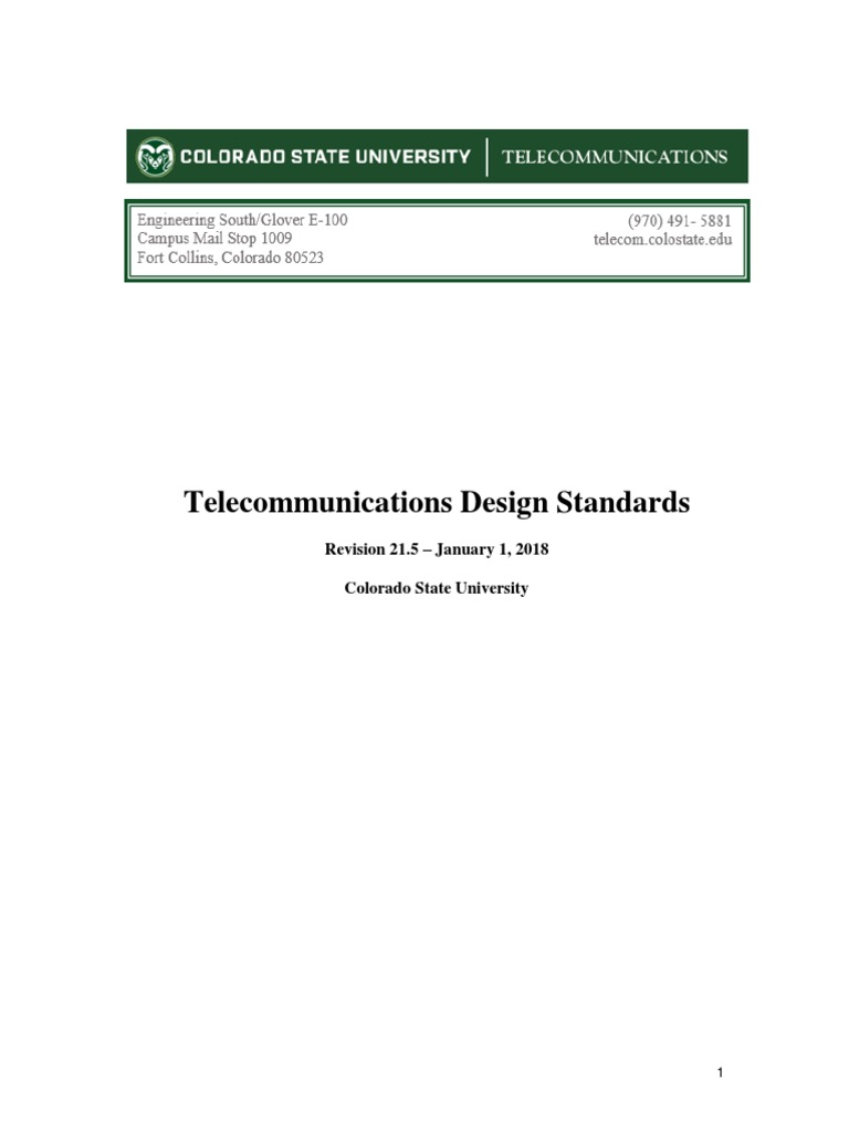 Telecommunications Design Standards: Revision 21.5 - January 1, 2018 Colorado State University