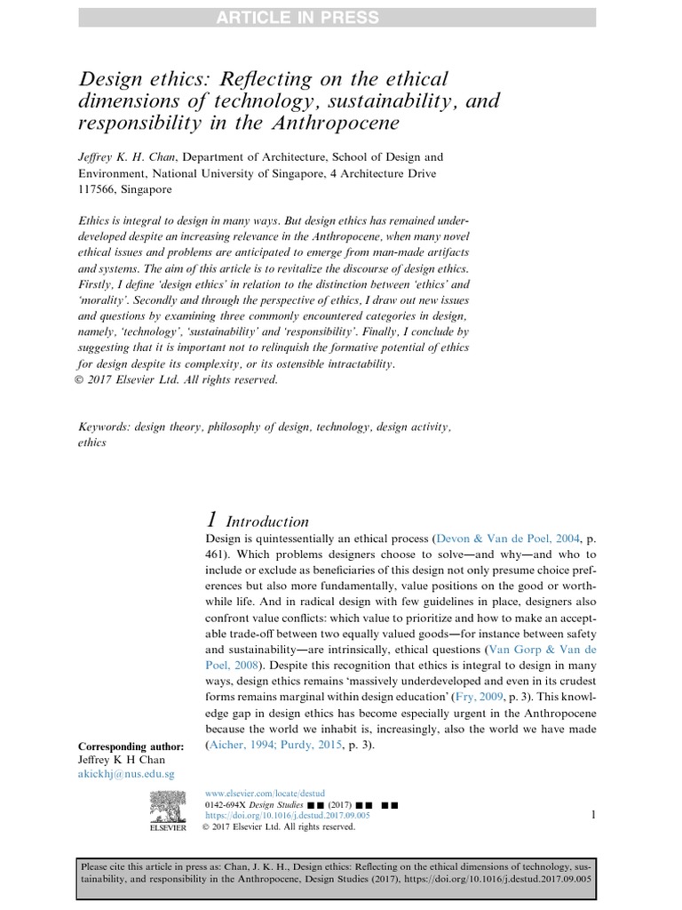Please cite this article in press as: Chan, J. K. H., Design ethics: Reflecting on the ethical dimensions of technology, sus-