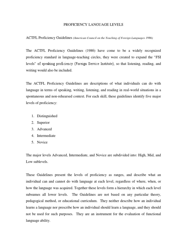 These Guidelines present the levels of proficiency as ranges, and describe what an