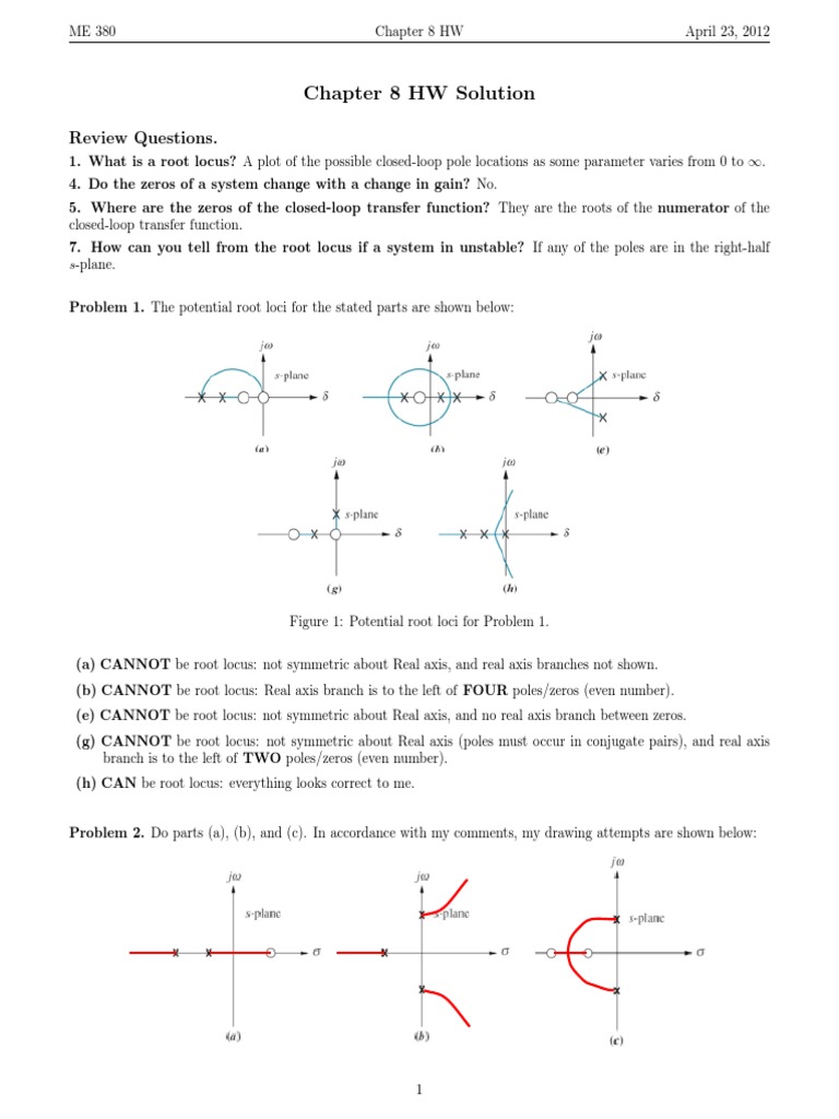 1. What is a root locus? A plot of the possible closed-loop pole locations as some parameter varies from 0 to ∞.