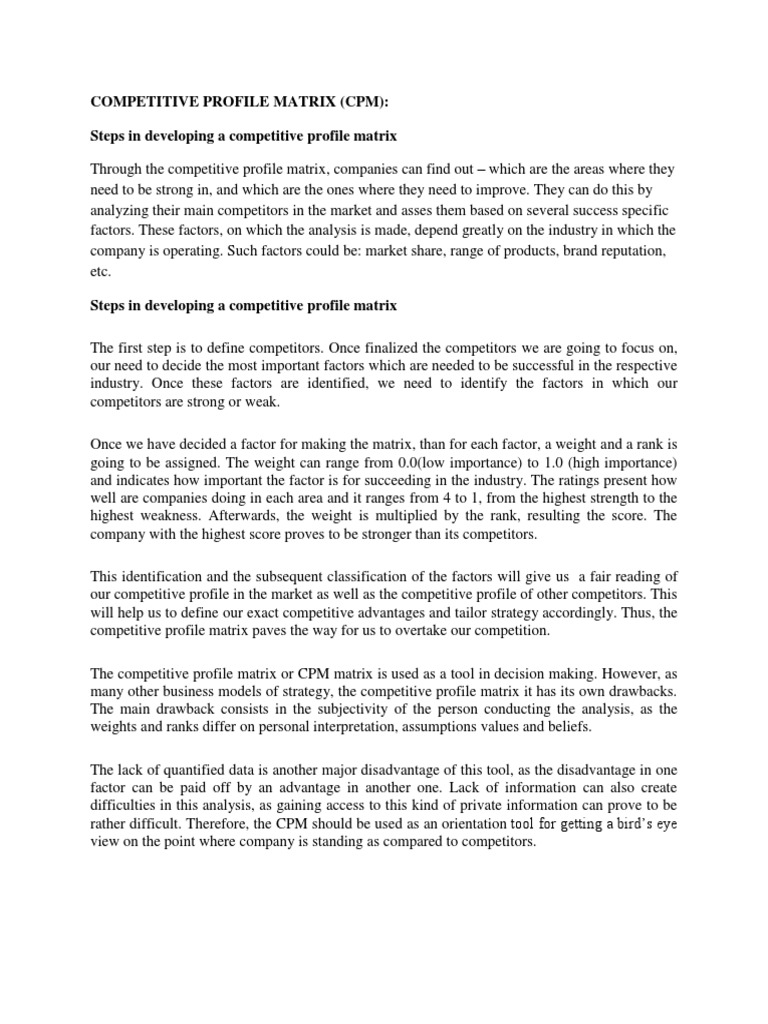 many other business models of strategy, the competitive profile matrix it has its own drawbacks.