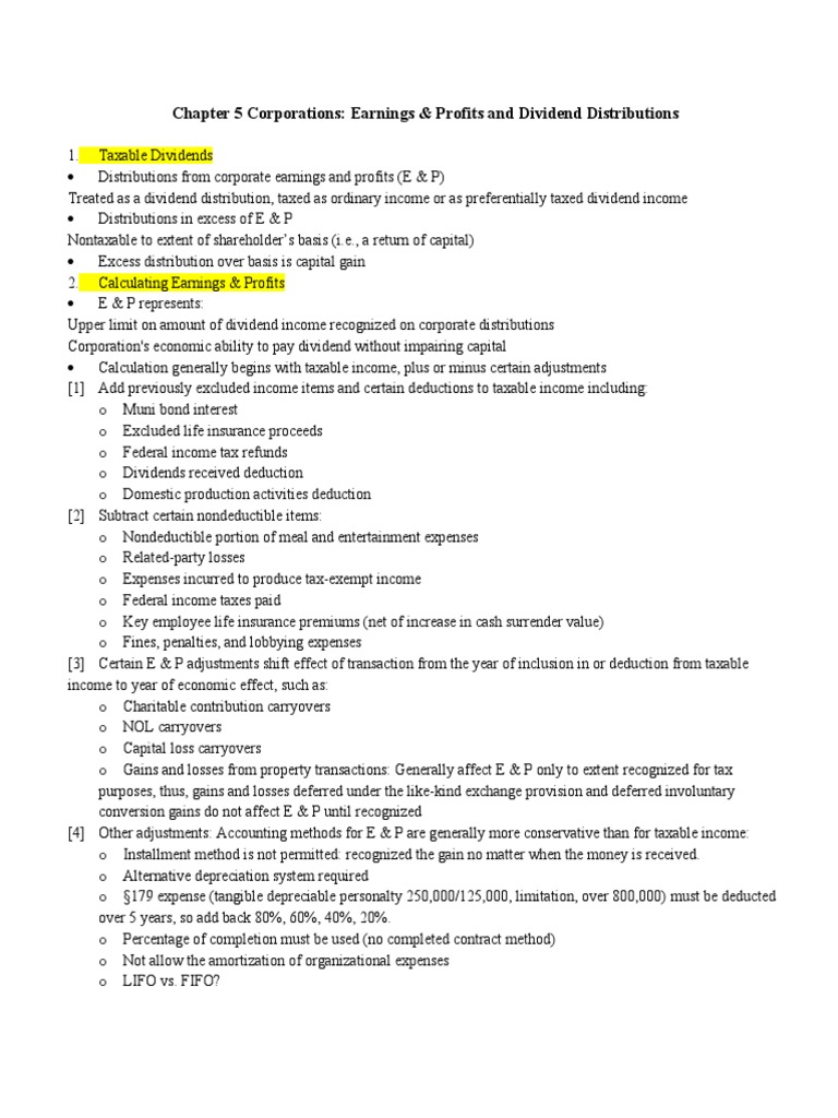 Chapter 5 Corporations: Earnings & Profits and Dividend Distributions