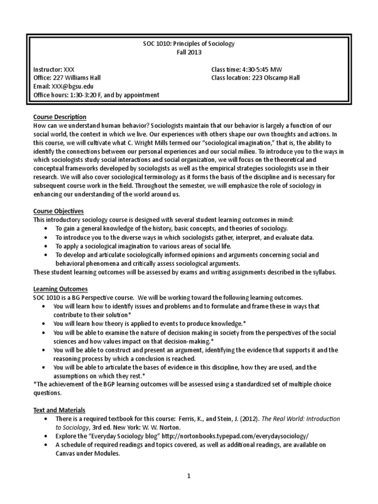 SOC 1010 is a BG Perspective course. We will be working toward the following learning outcomes.