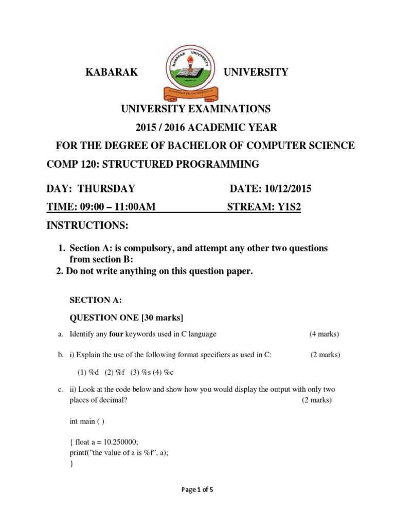 d. Differentiate between a keyword and an identifier as used in C language (2 marks)