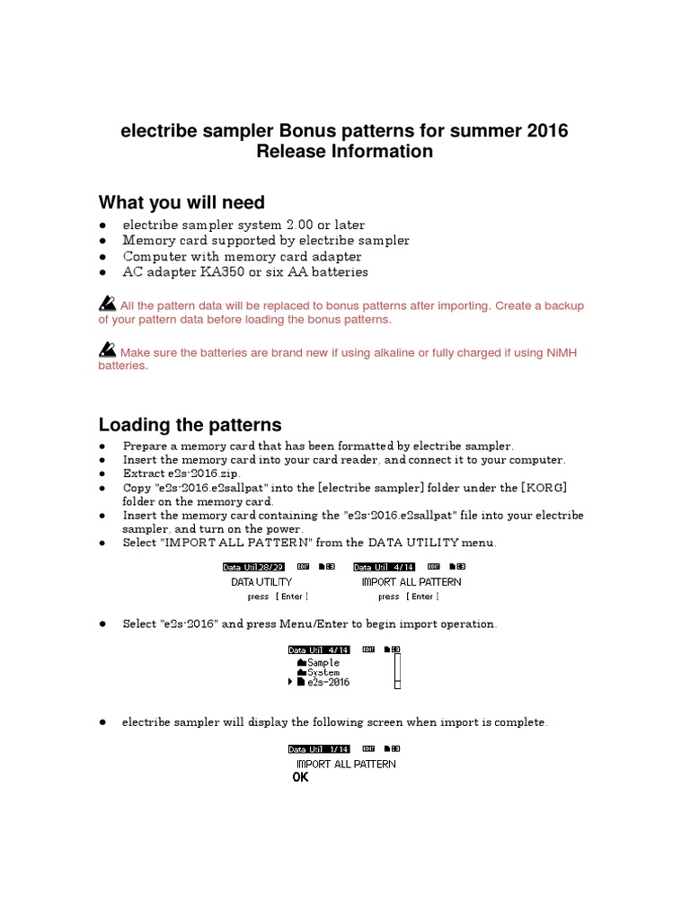 electribe sampler Bonus patterns for summer 2016